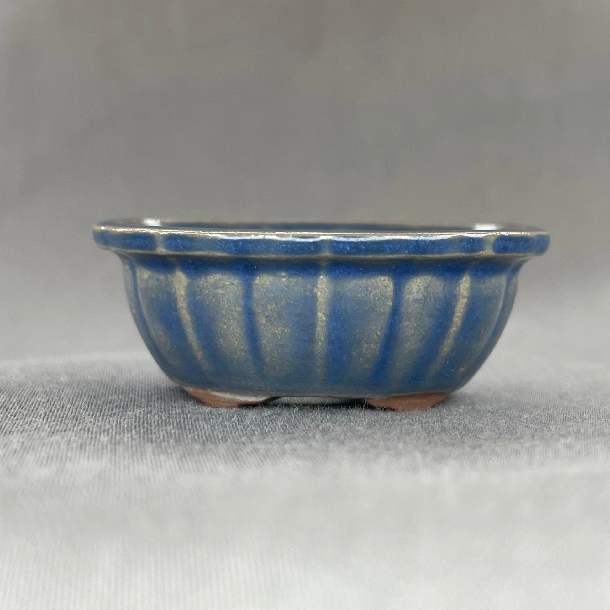New! Tiny Scalloped Oval Mame Bonsai Pot in Denim Chocolate, Only 1.5 inches long