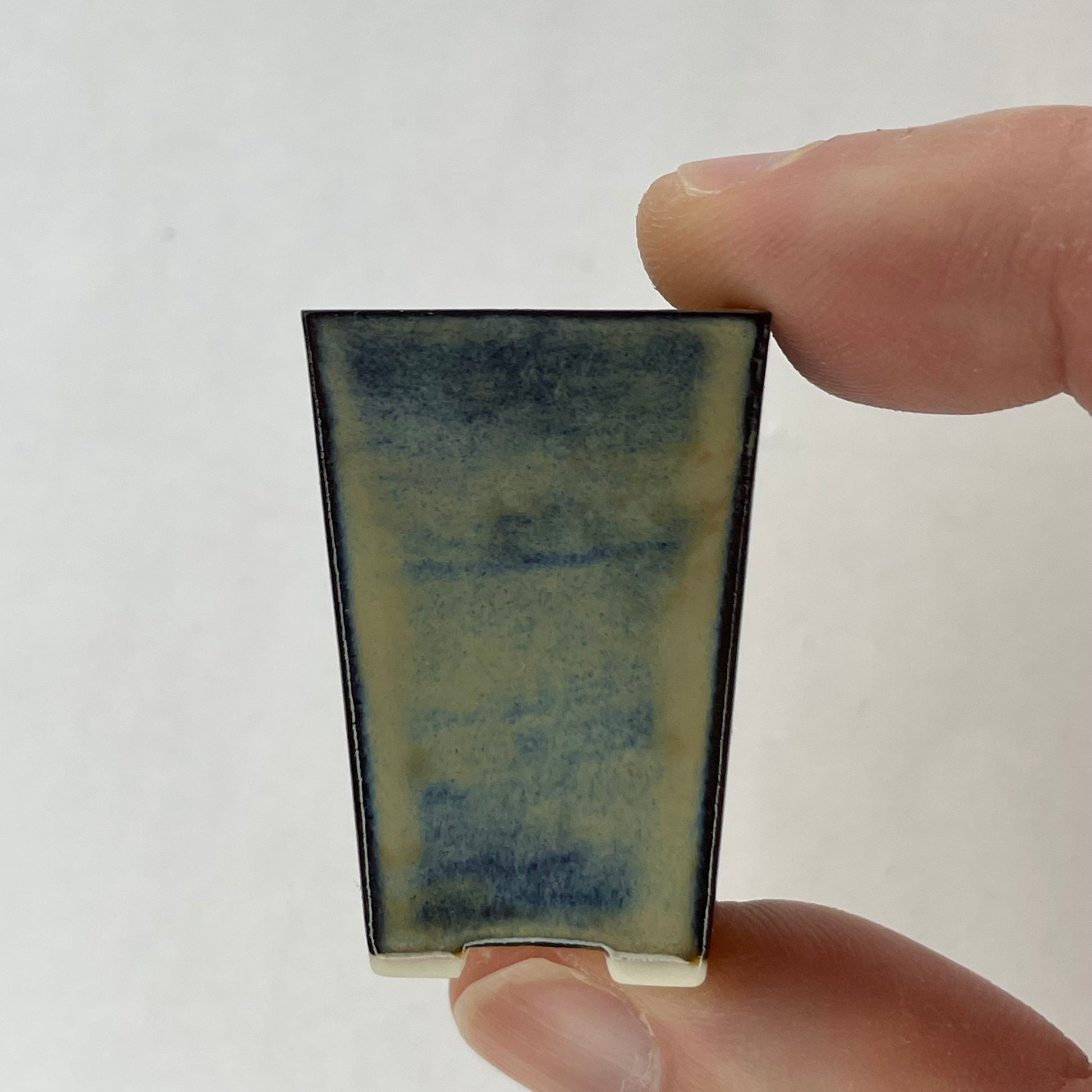 Miniature bonsai pot, less than 1.75 inches tall and 1.25 inches wide.