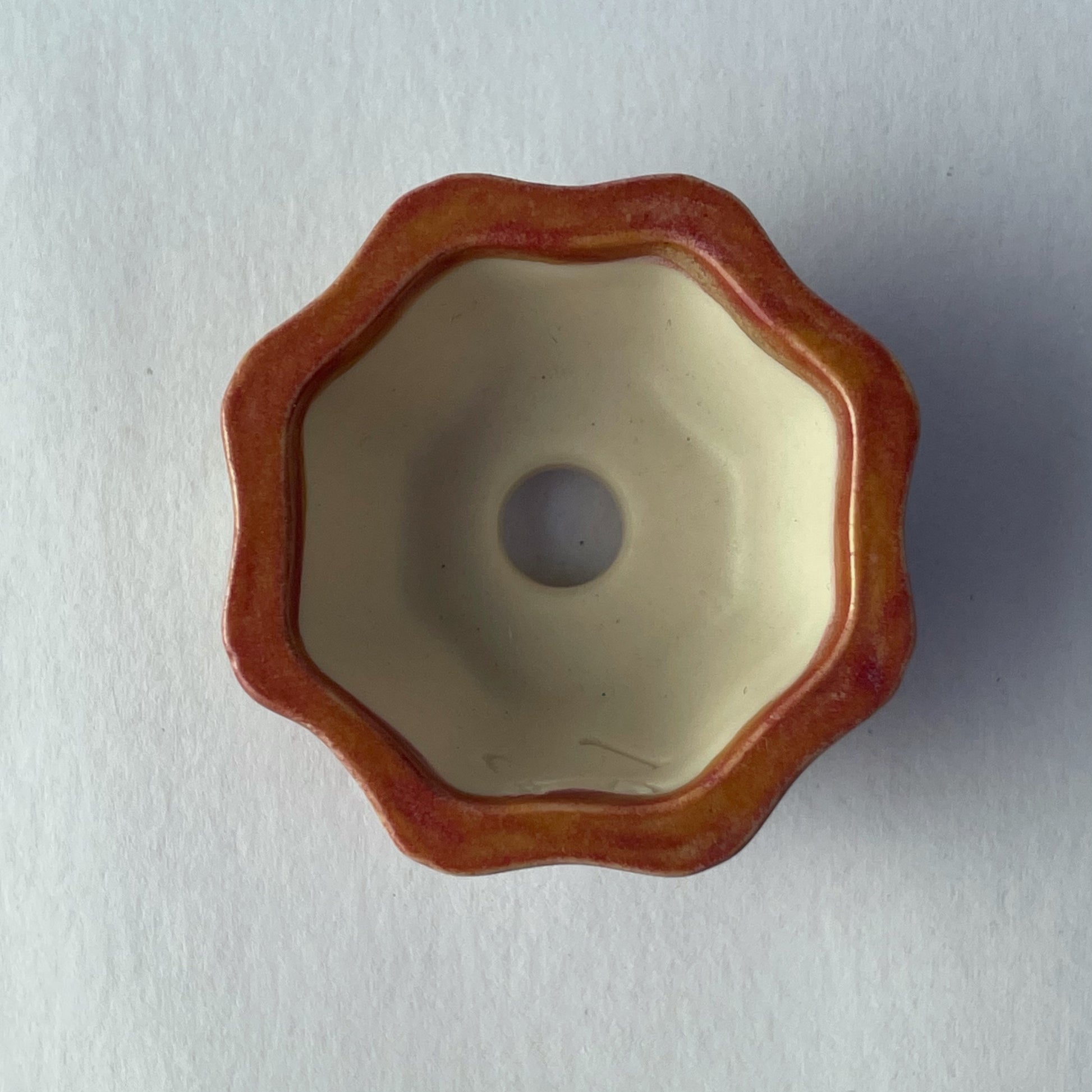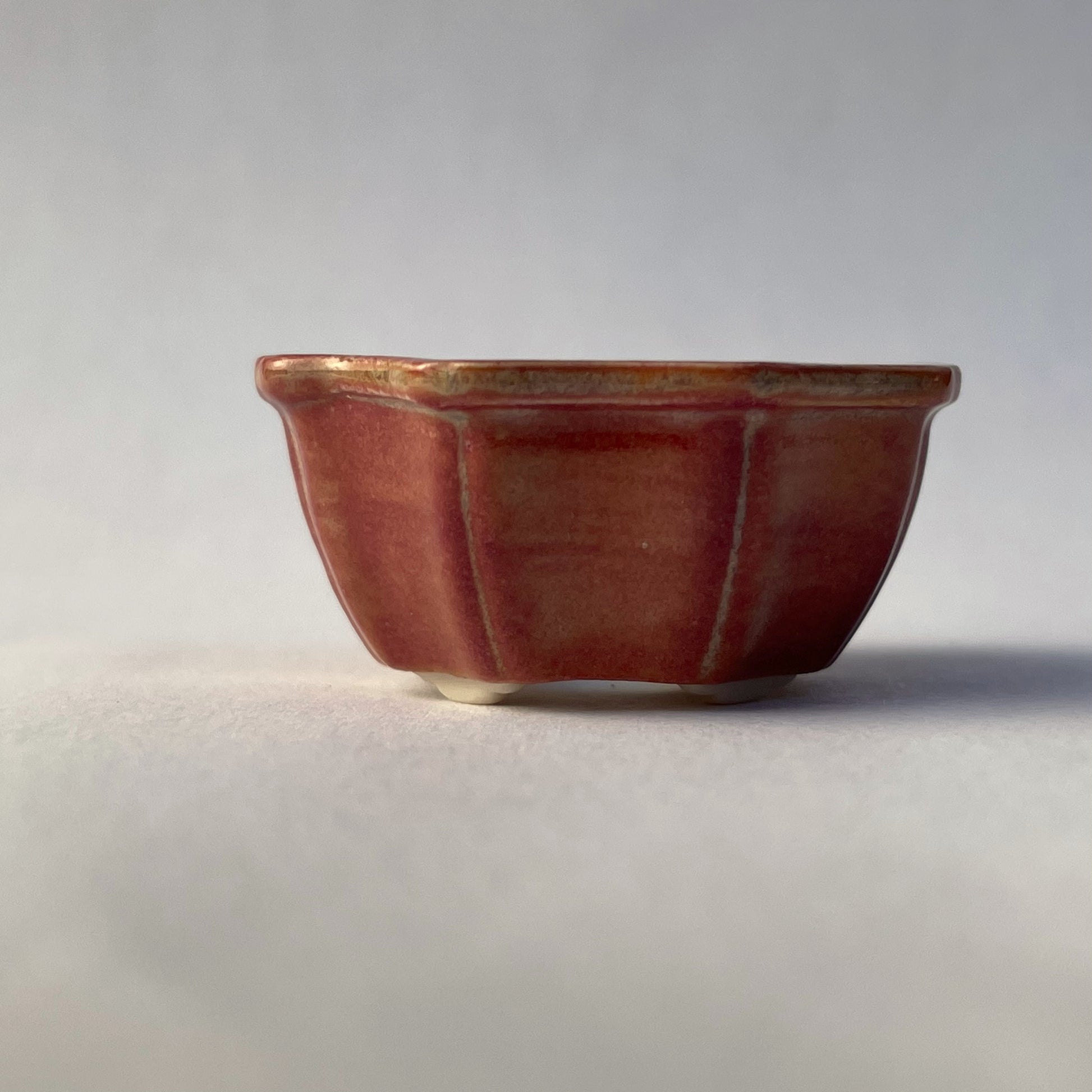 Tiny Flower-Shaped Mame Bonsai Pot in Rose Opal Lustre, Less than 1.5 inches wide