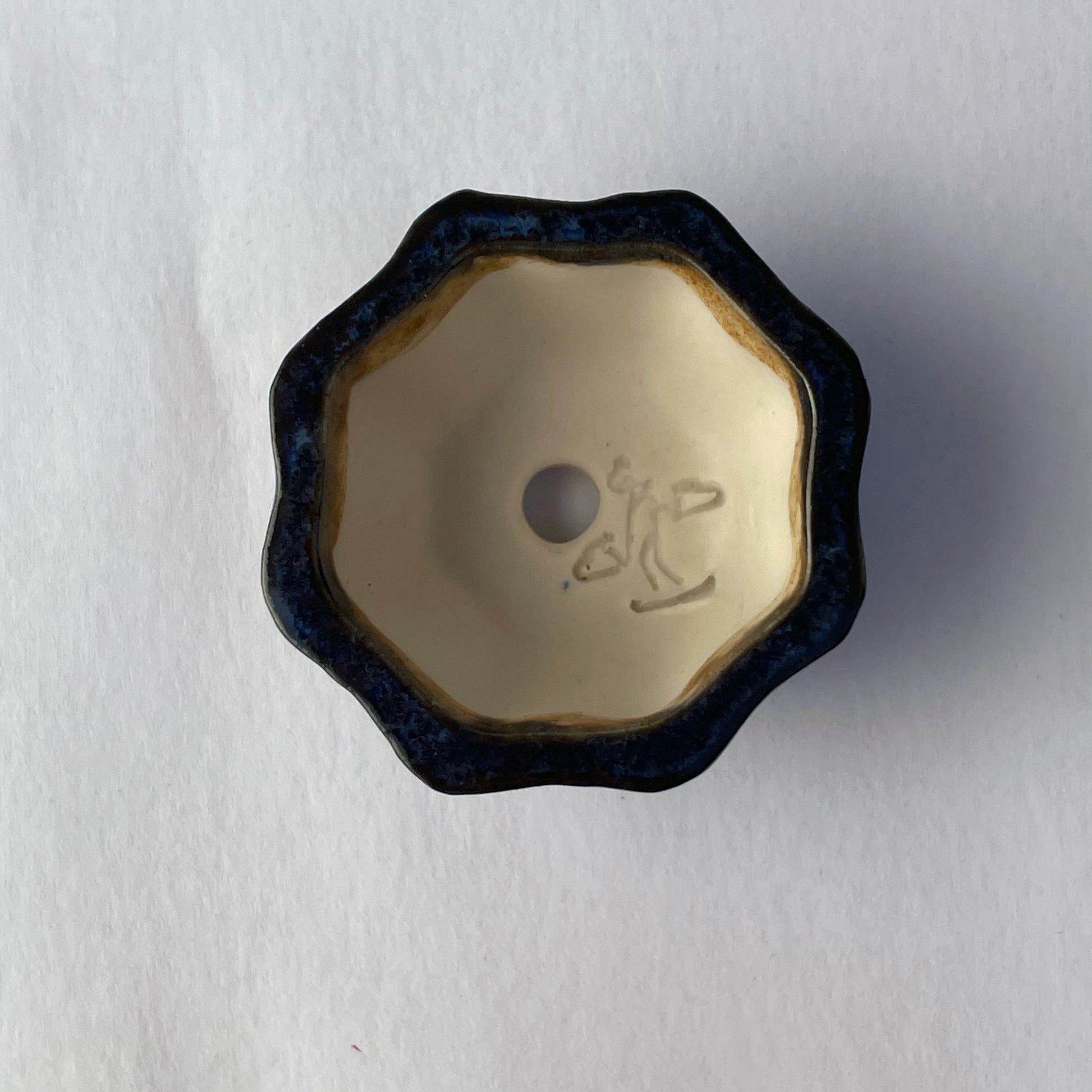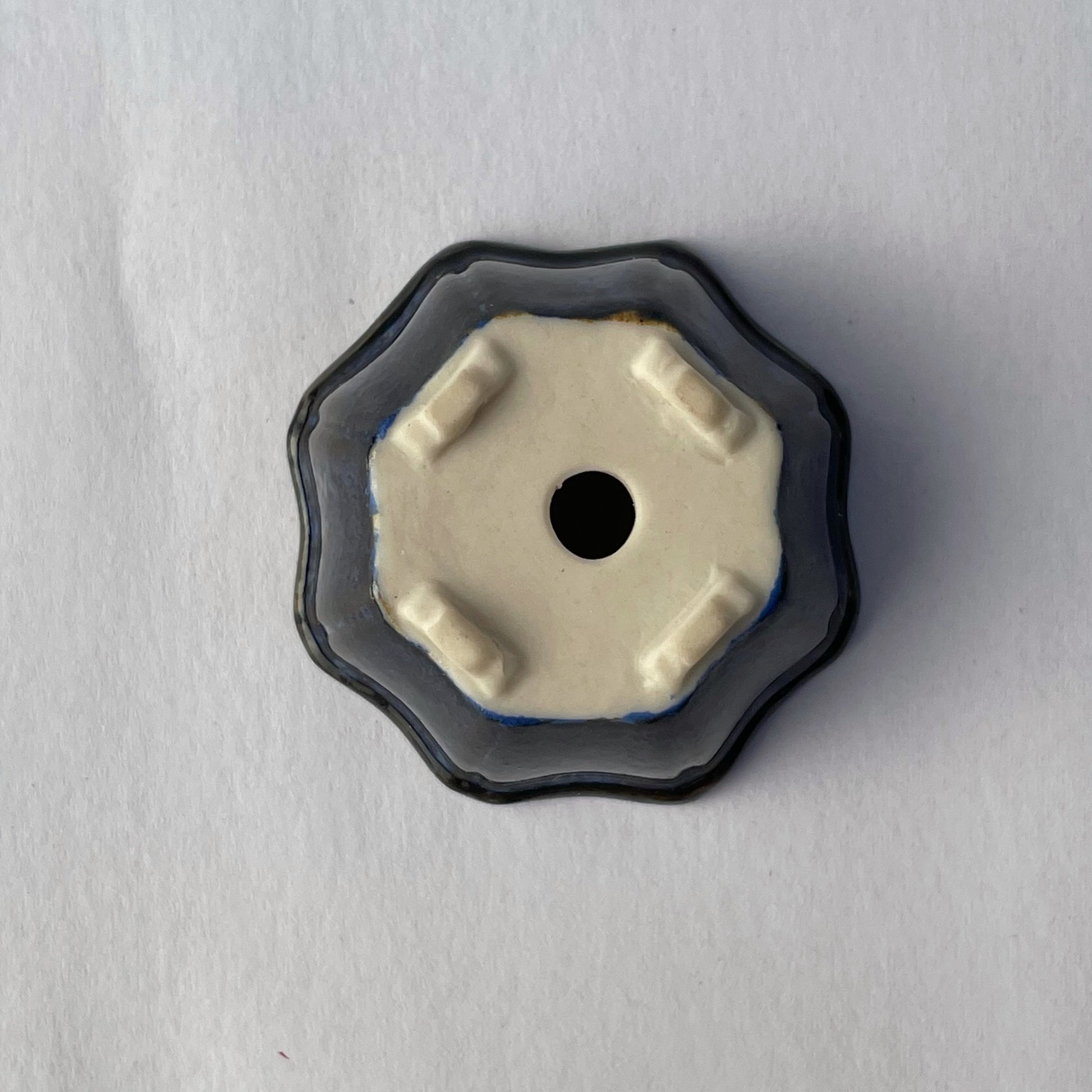 New! Tiny Flower-Shaped Mame Bonsai Pot in Blue Champagne, Less than 1.5 inches wide