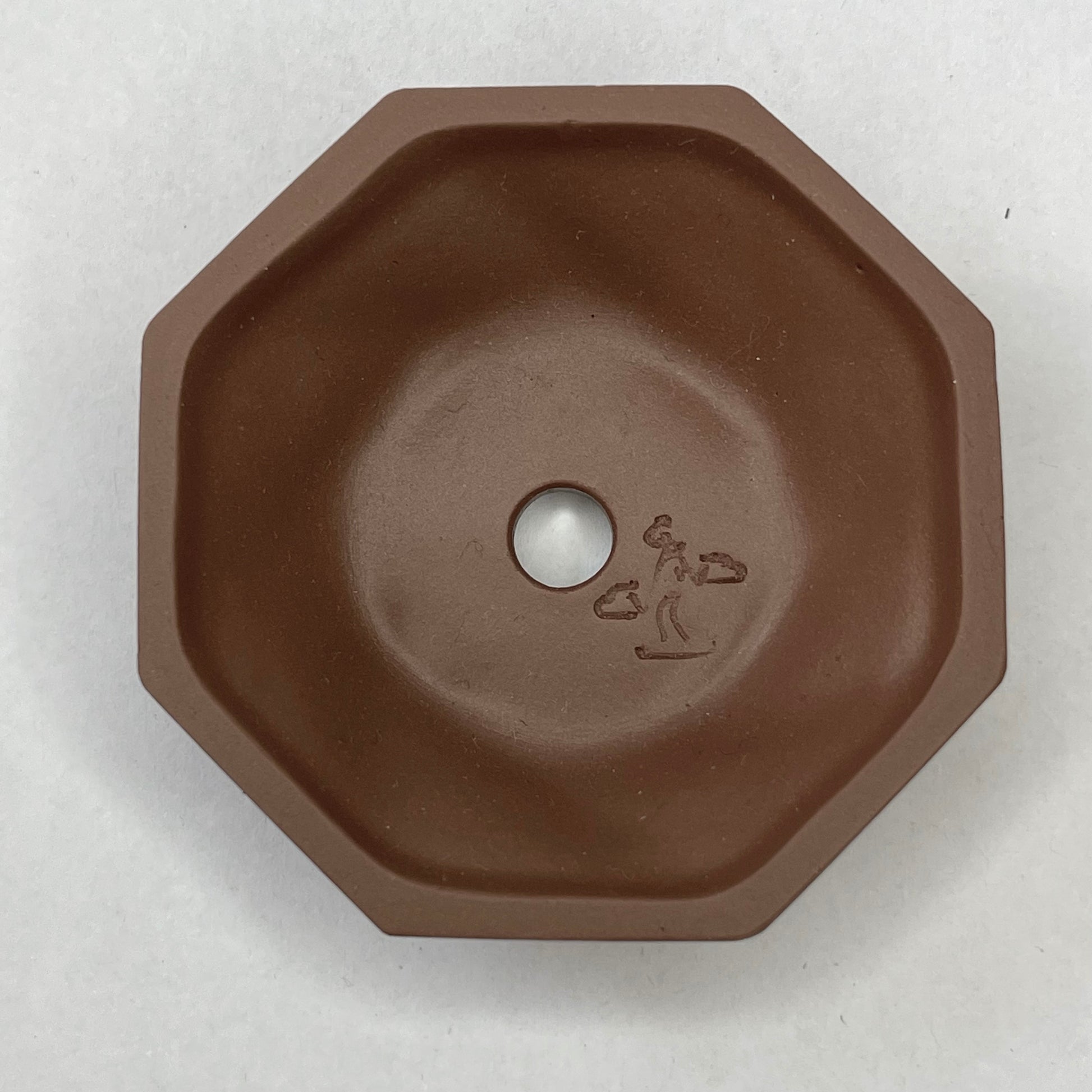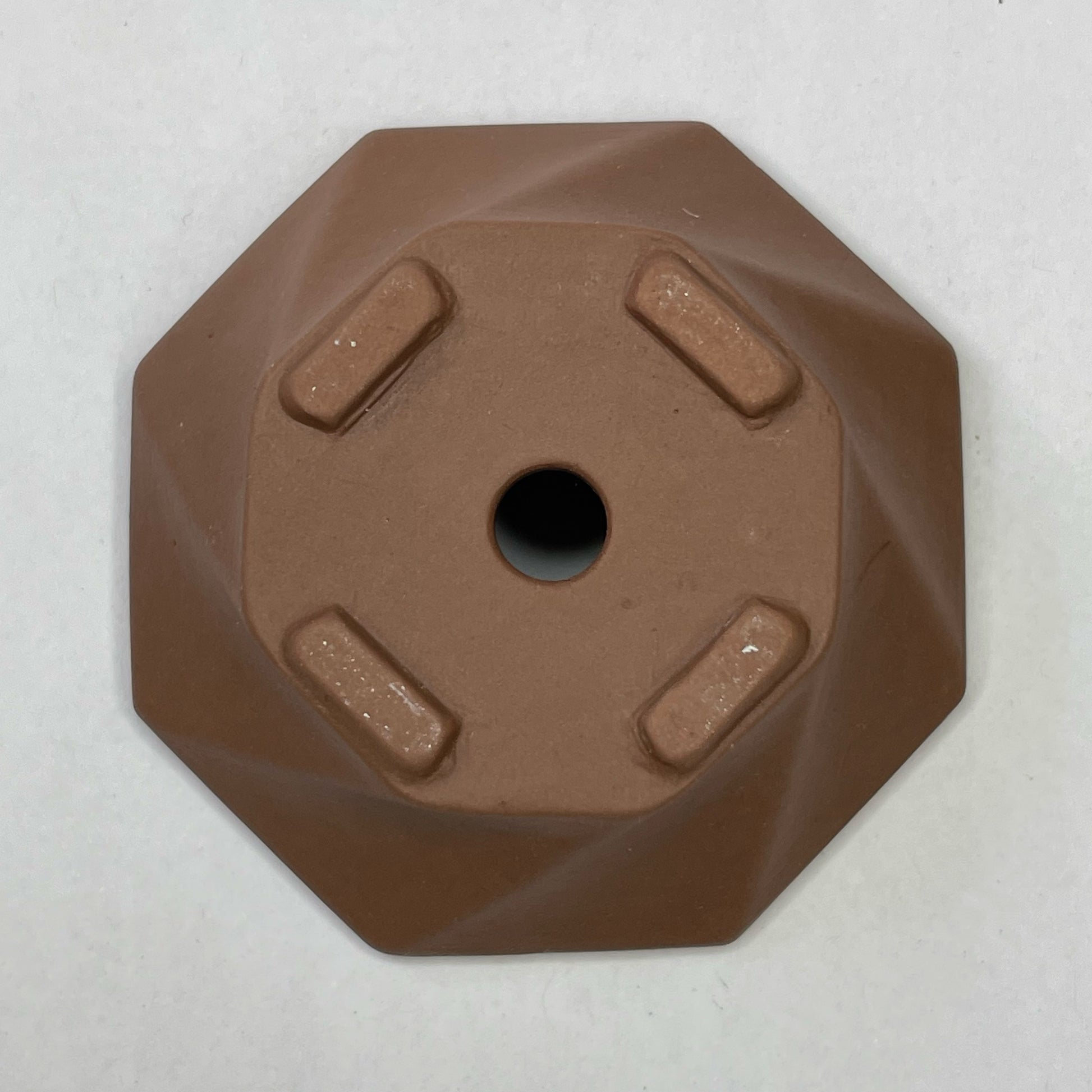 New! Tiny Unglazed Spiral Octagon Mame Bonsai Pot in Chocolate Porcelain, Less than 2.25 inches wide