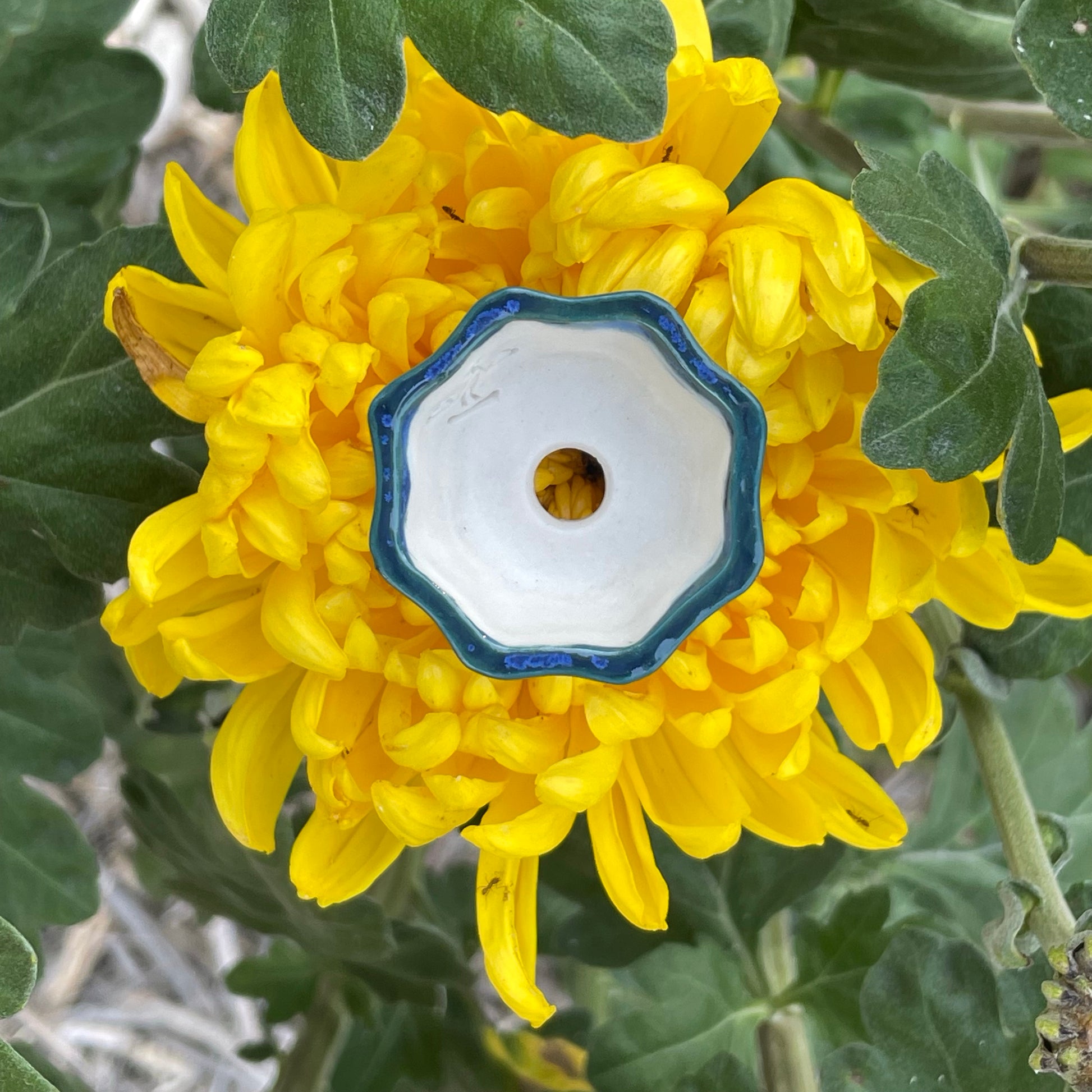 Tiny Flower-Shaped Mame Bonsai Pot in Teal Cerulean, Less than 1.5 inches wide