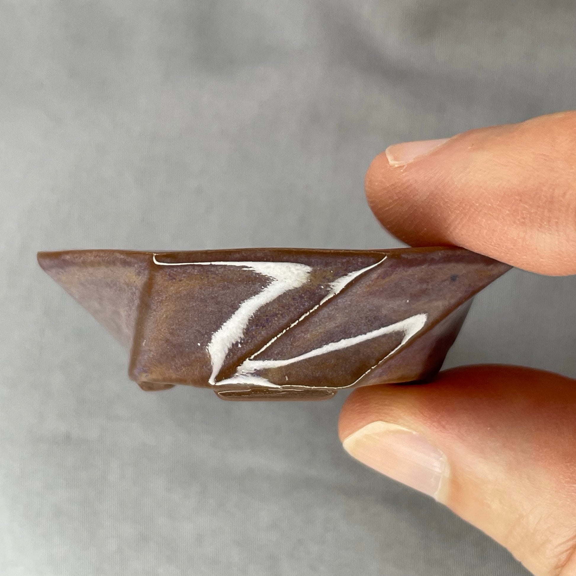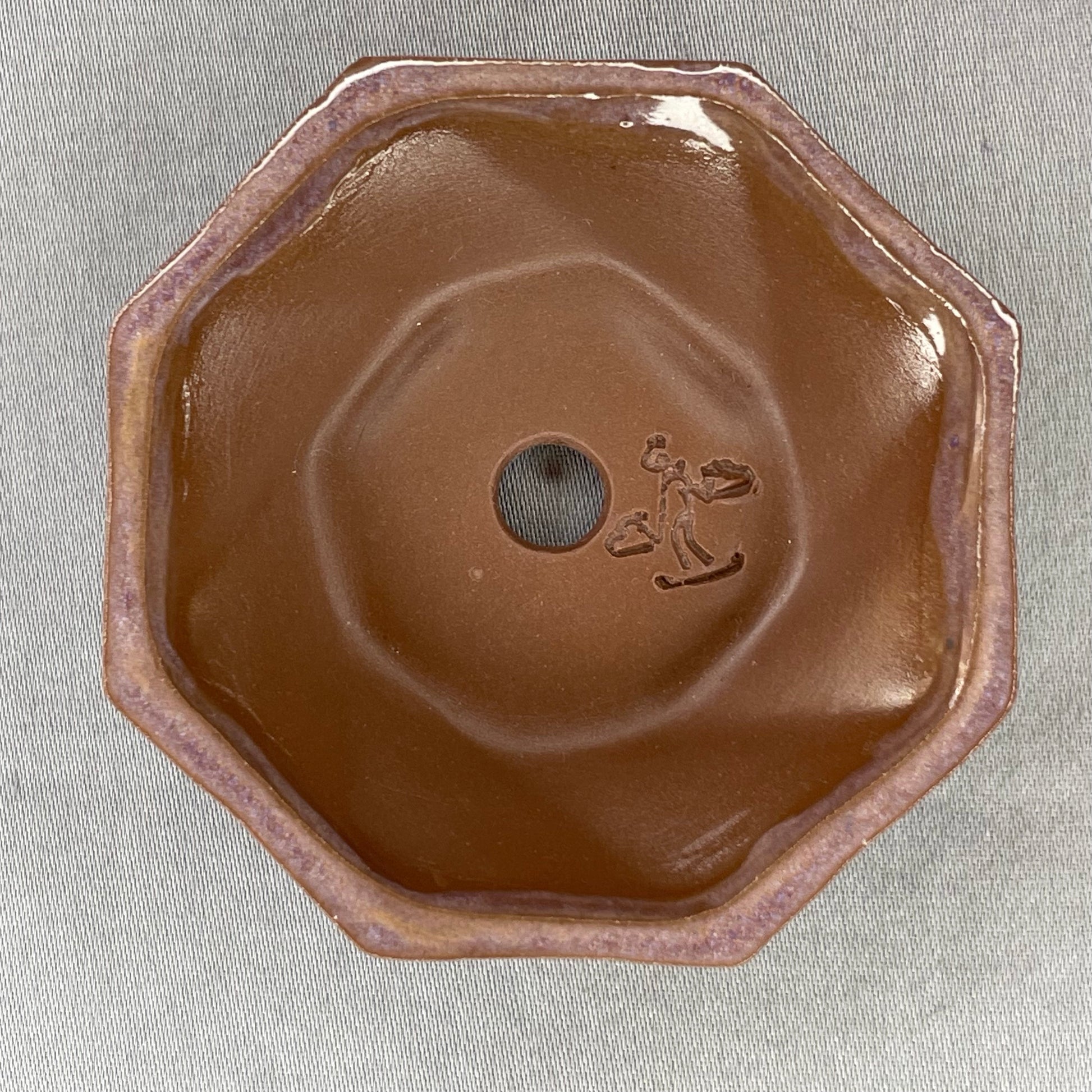 New! Tiny Spiral Octagon Mame Bonsai Pot in Chocolate Purple Aster, Only 2 inches wide