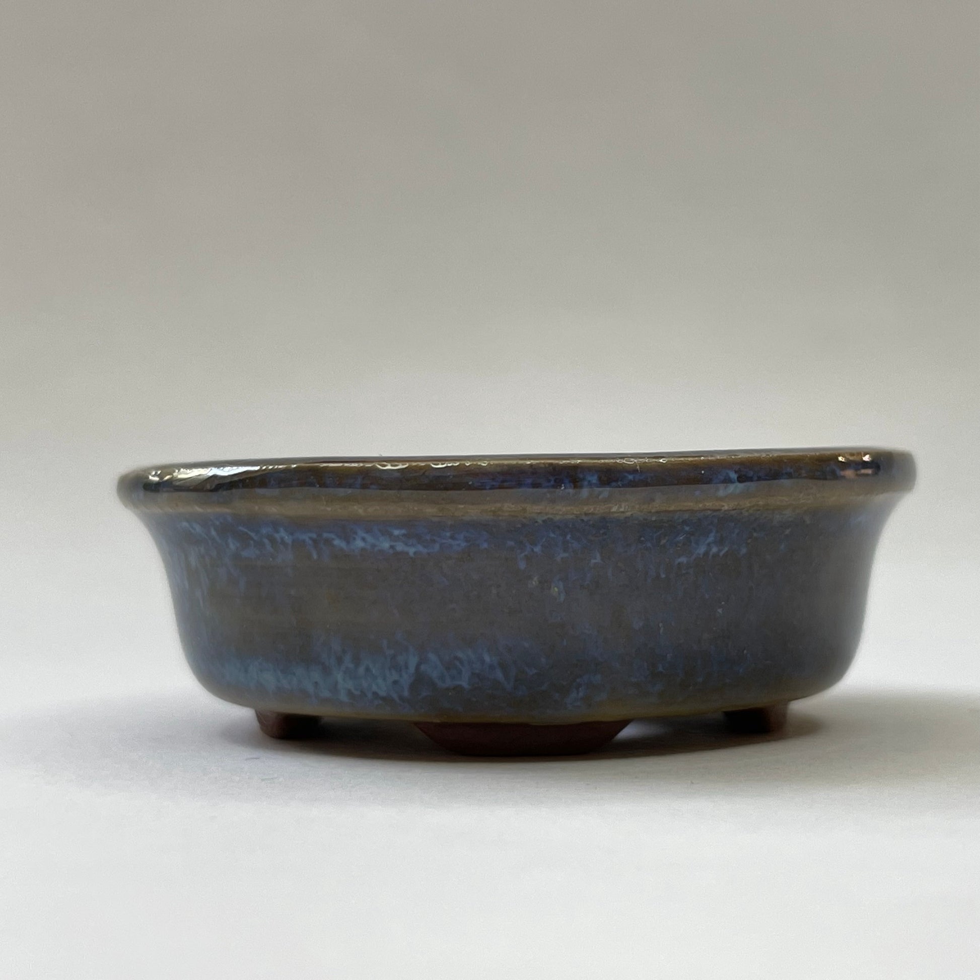 New! Tiny Oval Mame Bonsai Pot in Chocolate Porcelain with a Blue Glaze, About 1.5 inches long