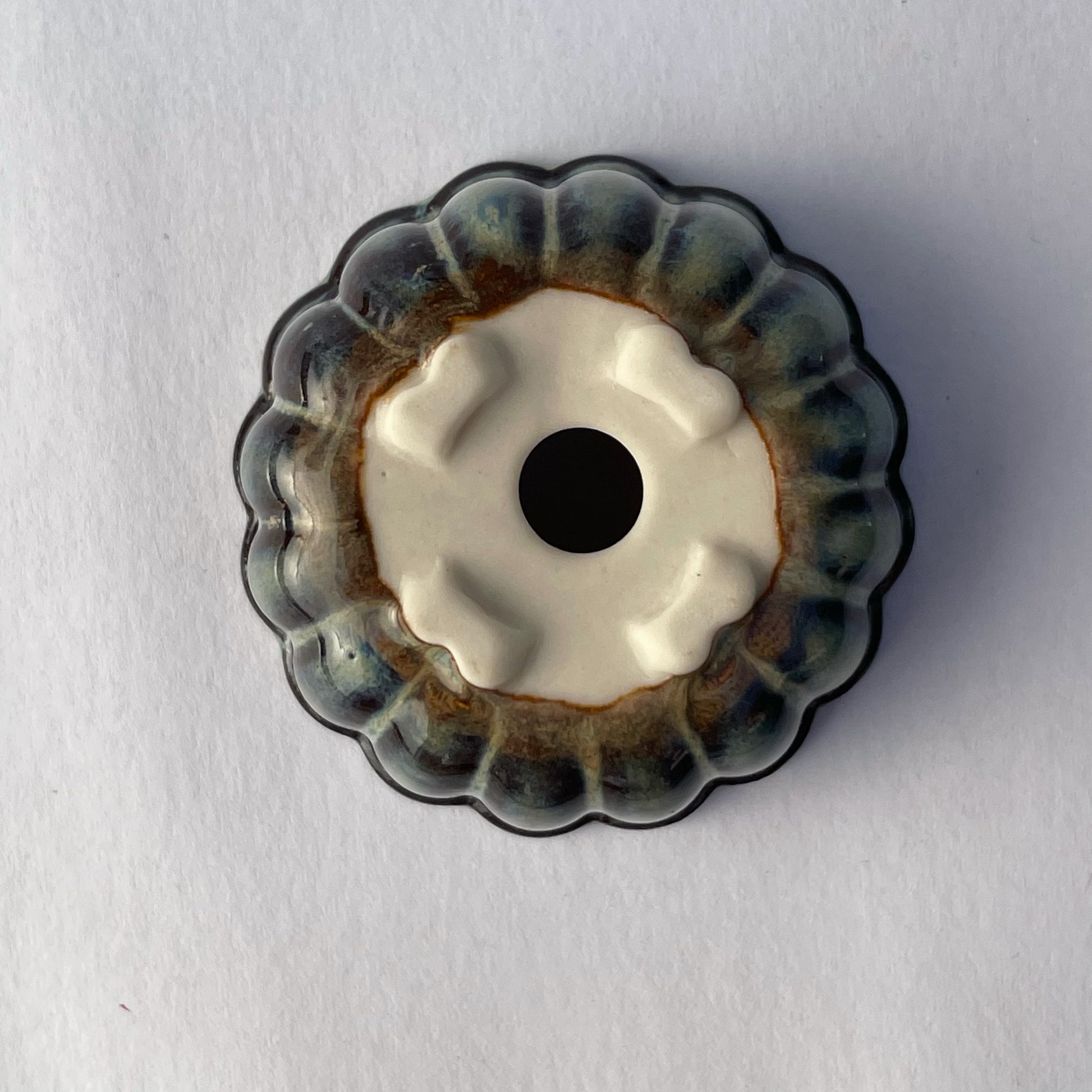 New! Tiny Round Scalloped Oval Mame Bonsai Pot in Dark Opal Lustre, About 1.5 inches long