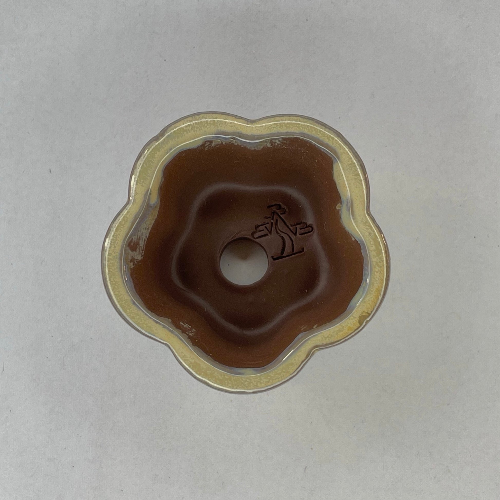 New! Tiny Flower-Shaped Mame Bonsai Pot in Chocolate Blue Snowflake, Less than 1.5 inches wide