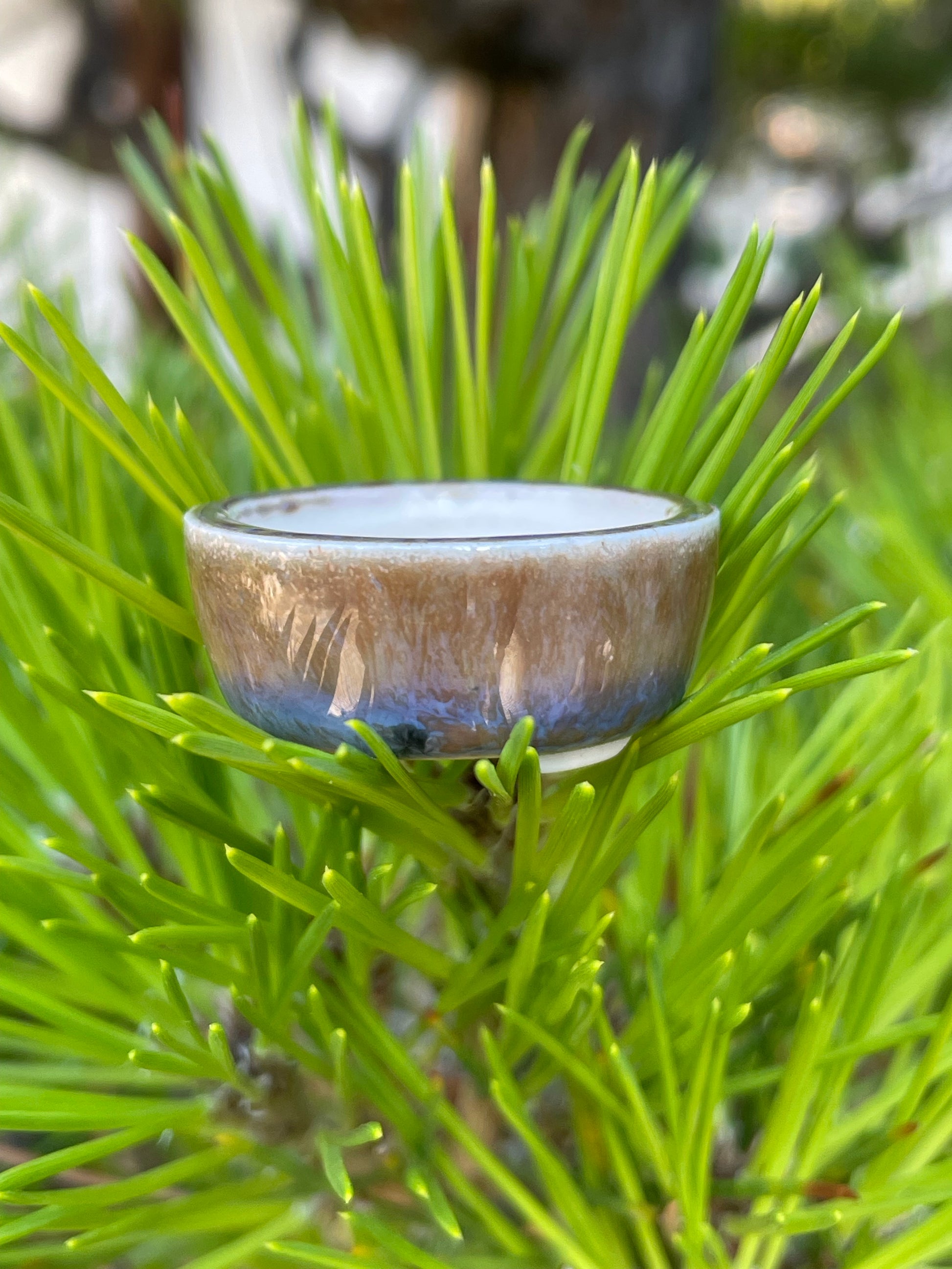 Handcrafted glazed porcelain mame bonsai pot for the tiniest tree.