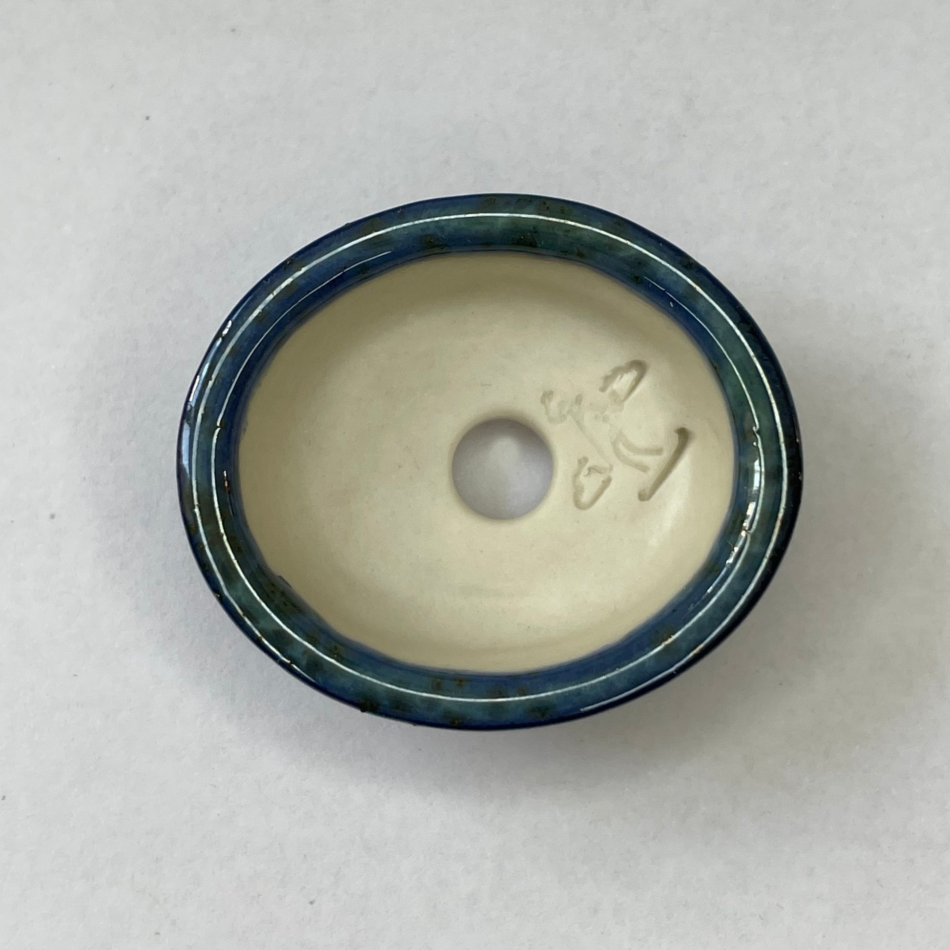 New! Tiny Oval Mame Bonsai Pot in Blue Monstera, Only 1.5 inches