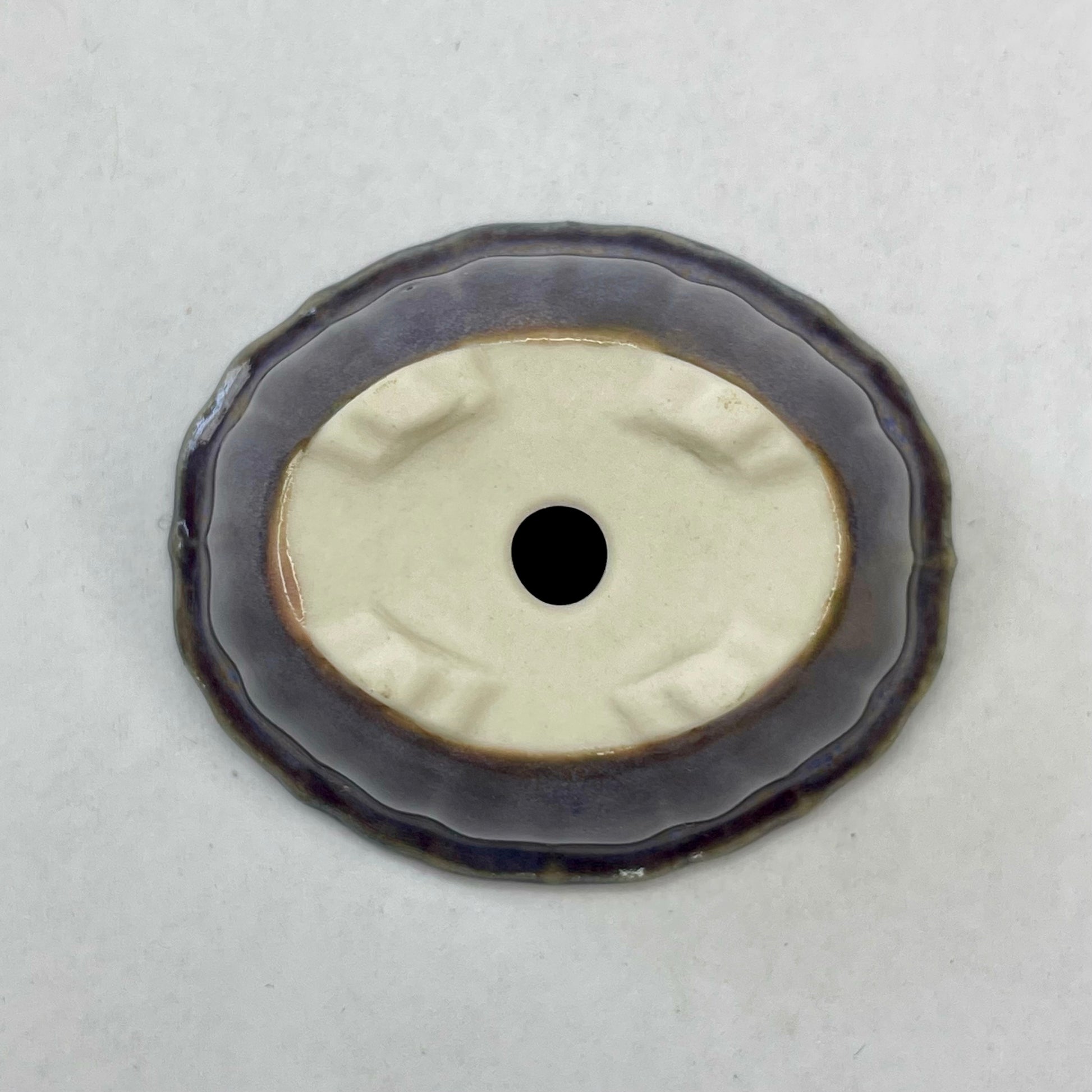 Tiny Scalloped Oval Mame Bonsai Pot in Double Purple, About 1.5 inches long